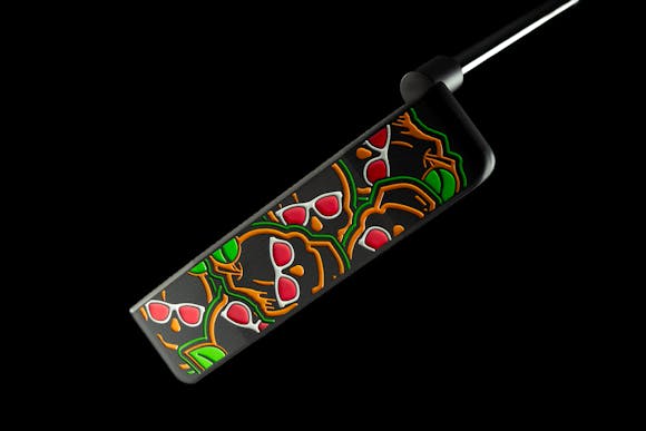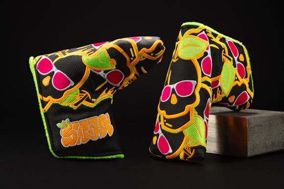 Introducing our most scrumptious putter release of the year: featuring a juicy bitten peach skull on the face, SWAG peachy graffiti in the cavity, and luscious stacked peach skulls on the sole, along with a stacked bitten peach cover and an orange leather grip, this setup is simply irresistible!