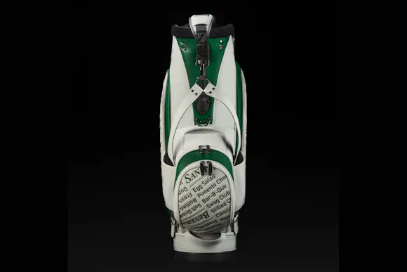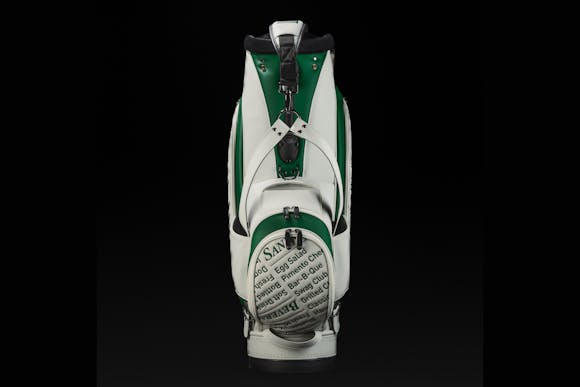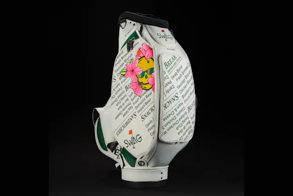 A truly rare item for the most enthusiastic Swag fans, this PGA Tour-modeled staff bag is built with infamous Augusta menu favorites panels that feature SWAG branding. An impeccably stitched Azalea Skull on the side makes this bag impossible to miss. Whether you are a +2 handicap or a 28 handicap, as long as you live by the SWAG mantra "Don't Give A Putt" on the strap, gaming this bag should not be a problem!